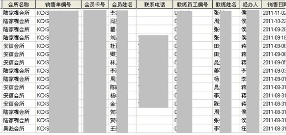1、会员信息共享问题在以下表格中可以体现出来,可以统一管理所有会所的信息: