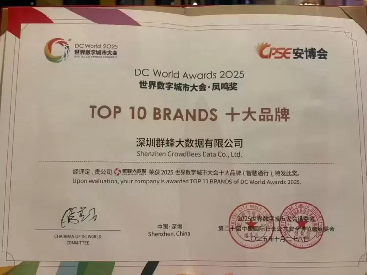 在本次盛会上,深耕大出行领域七年的群蜂大数据凭借其卓越的创新能力和实践成果,一举荣获大会重磅奖项“凤鸣奖”,并被评为“2025世界数字城市大会智慧通行十大品牌”,公司总经理陈非先生受邀出席了2025全球数字安防盛典暨开幕晚宴,见证了公司在数字城市建设中的高光时刻。
