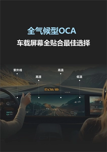 全气候型OCA能满足中控屏、副驾屏、液晶仪表、后排屏、HUD、电子后视镜等多种车载显示需求,确保在车辆全生命周期内显示系统稳定可靠。