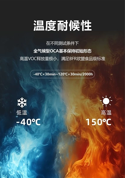 车载环境温度变化极大,全气候型OCA需承受-40℃至150℃的宽温循环测试。