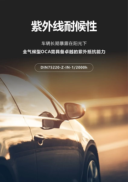 车辆长期暴露在阳光下,全气候型OCA需具备卓越的紫外抵抗能力: