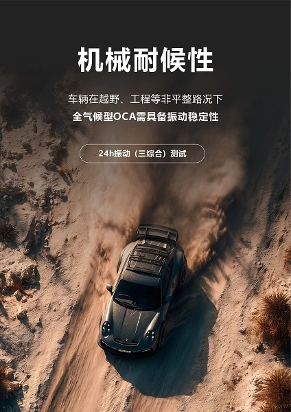 车辆在越野、工程等非平整路况下,全气候型OCA需具备振动稳定性: