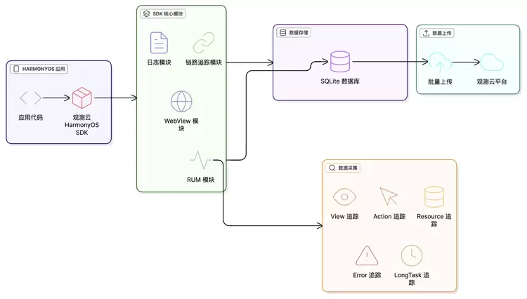 观测云 HarmonyOS SDK 围绕“真实体验”构建数据采集体系,通过自动化、轻量化的方式捕获应用运行中的关键指标。全功能适用于典型的开发、调试、发布与持续优化流程。