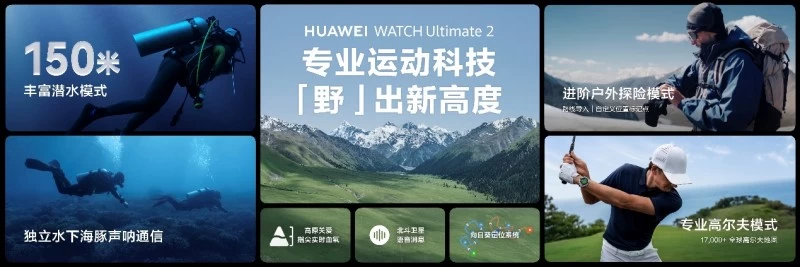 11月25日,华为正式推出高端智能腕表HUAWEI WATCH Ultimate 2 非凡探索。作为非凡探索系列的第二代产品,其迎来重大科技突破,业界首发海豚声呐通信技术,让水下通信更便捷,采用创新防水系统实现150米潜水级防水,助你潜得更深更安全。同时,全新环隙天线系统承载北斗卫星语音消息, eSIM先锋通信等强大通信能力,时刻保持更快、更稳定的网络。搭载华为向日葵精准定位系统并支持高尔夫及户外探险等多种运动模式,是专业运动爱好者的理想选择。