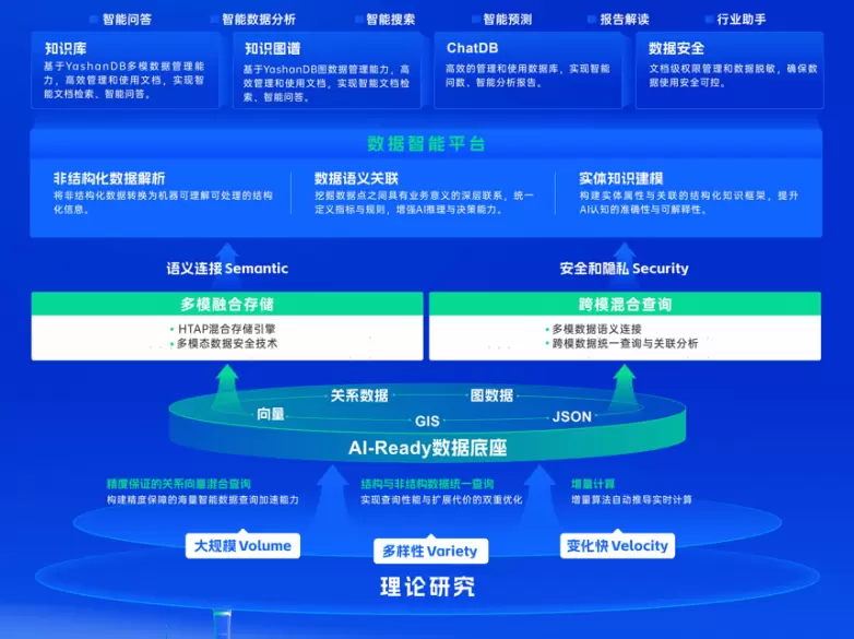 面向数字化和智能化融合发展趋势,在共享集群规模化商用的坚实基础上,YashanDB以前瞻性的技术布局,为企业的智能化转型夯实数据基础,通过向量混合查询、多模融合数据管理与增量计算三大原创技术,加速构建统一的AI就绪数据底座。