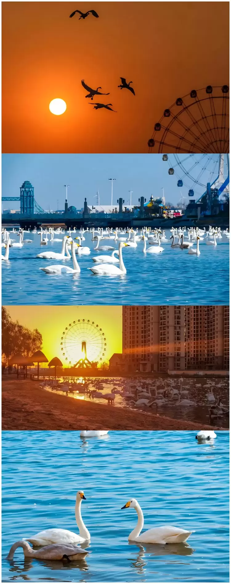 6.自觉树立爱护白天鹅、保护白天鹅的良好意识,在观赏天鹅时文明游玩、文明拍摄,不要干扰候鸟正常栖息生活,共同给天鹅营造一个安全良好的栖息环境。