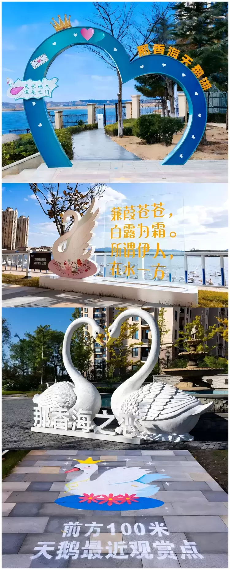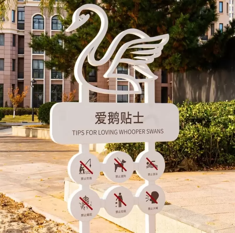 为了丰富您的观鹅行程,那香海于天鹅湖沿岸准备了诸多指示牌与美陈,方便您前往湖边打卡拍照。
