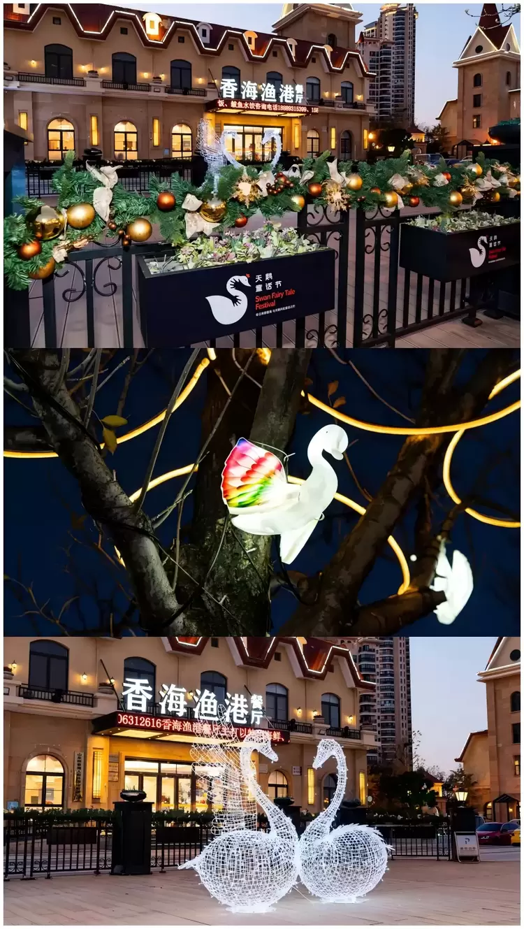 夜幕降临,景区灯光渐起,去寻找那些闪闪发光的“天鹅们”吧,为冬日的夜晚增加一丝浪漫的氛围。