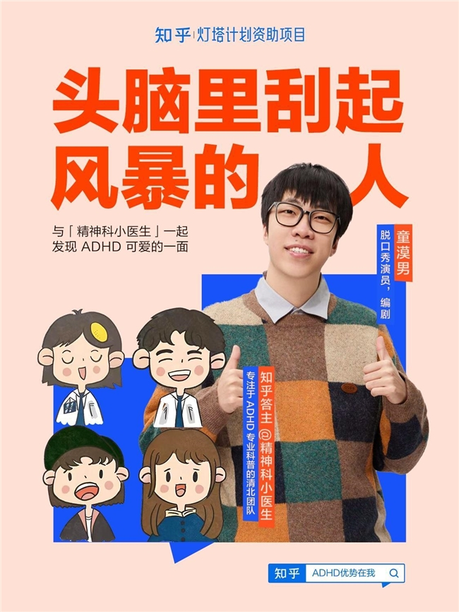 据悉,该纪录访谈节目的诞生源于 2023 年知乎灯塔计划支持的“ADHD优势在我”科普项目。近年来,ADHD知识逐步普及,但也出现“过度 ADHD”的片面认知倾向。为传递客观、全面的ADHD相关信息,知乎答主精神科小医生与其团队发起该项目,邀请脱口秀演员童漠男等多位ADHDer共同创作,通过微记录访谈的形式,真实呈现ADHDer群体的多元面貌:既分享他们因特质带来的日常挣扎,更聚焦ADHD赋予的独特优势,以及他们与自身特质和平共处、实现自我价值的过程。