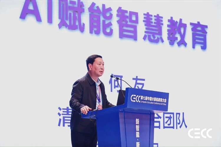 何友院士作了题为“AI赋能智慧教育”的主题报告,系统阐述了大模型等AI技术的教育应用与未来趋势,回顾了AI与教育融合的历程,介绍了从辅助教学、个性化学习到AR教学、AI教师数字人等前沿应用。他指出,AI将在推动教育公平、发展特殊教育等方面持续发力,同时也需应对模型偏见与滥用等安全挑战,为智慧教育发展提供了系统性见解。