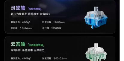 轴体选择丰富:我这款是凯华灵蛇轴,触发非常快,特别适合游戏;如果你喜欢线性手感,佳达隆云苔轴也是个高端选择,出厂自润滑,敲击顺滑声音纯粹。