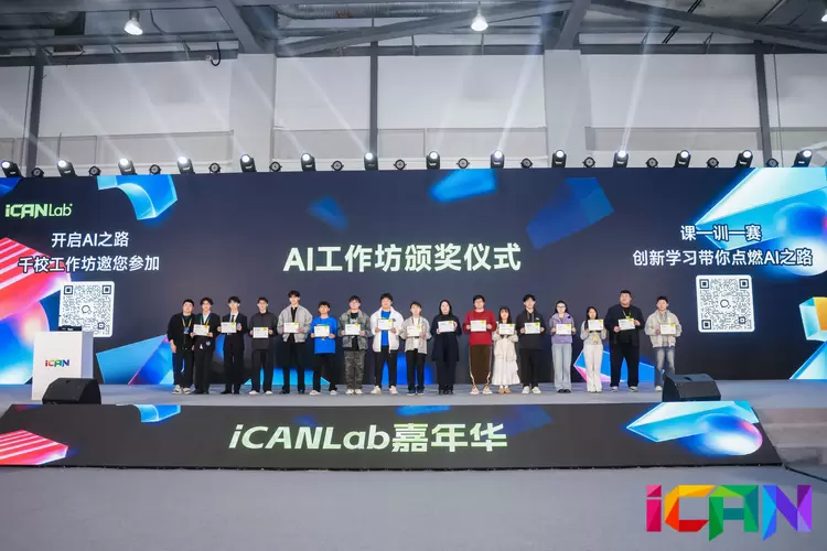 在比赛同期,一场精彩的iCANLab年度嘉年华成为场内亮点。活动内容丰富,不仅设置了企业宣讲、优秀导师分享、竞技体验、AI工作坊专区和学生实践等多个互动环节。