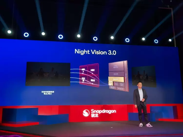 当用户录制夜景视频时,骁龙平台会启动名为Night Vision 3.0的AI算法:先由ISP+AI共同识别场景主体,确保对焦准确,随后拍摄多张不同曝光的帧并进行融合,逐步降低噪点,最后通过多帧HDR合成增强亮度和细节,拍出媲美大底传感器的暗光照片。