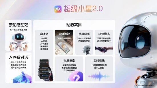 今年,中兴通讯星云AIOS 2实现了全面进化,不仅融合文字、语音、视觉、文件等全模态交互方式,还支持超级搜索,实现本地功能设置、随心记、记事本、联系人、会议纪要、图片、文件等本地数据的聚合查找及联网搜索,此外还集成了文档内容查找、AI代接、打字通话、通话摘要与翻译、AI密语等多种实用功能,全面覆盖生活、娱乐、工作等多个场景,为用户打造无处不在的智慧交互体验。