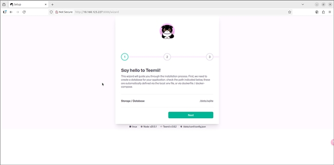 启动成功后,在浏览器访问http://本地IP:8088即可进入Teemii的初始化界面,根据向导完成初次配置,包括数据目录扫描、元数据规则设置等。