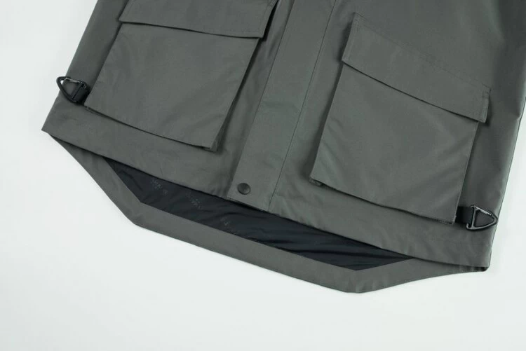 衣物整体走线工整,袖口、下摆、帽檐等易磨损部位采用双线缝制,所有接缝处均做了全防水压胶处理,压胶边缘平整光滑,无气泡、开胶现象,尤其在腋下、后背等活动量大的区域,压胶工艺更显细致,从细节处呼应了钓鱼人的使用需求。7个大容量立体口袋既能存放手机、充电宝等物品,加热时内侧同步升温,实现暖手储物双重功能。特别是双侧侧边口袋,内里和手背接触面,使用了抓绒面料,当把手放进口袋的瞬间不会有与口袋面料接触时的冰冷感。衣物内里专属拉链可衔接阿玛迪斯同尺码的抓绒外套或轻薄羽绒,“一衣多穿”轻松应对春秋微风至冬季严寒,大幅提升实用性与性价比。
