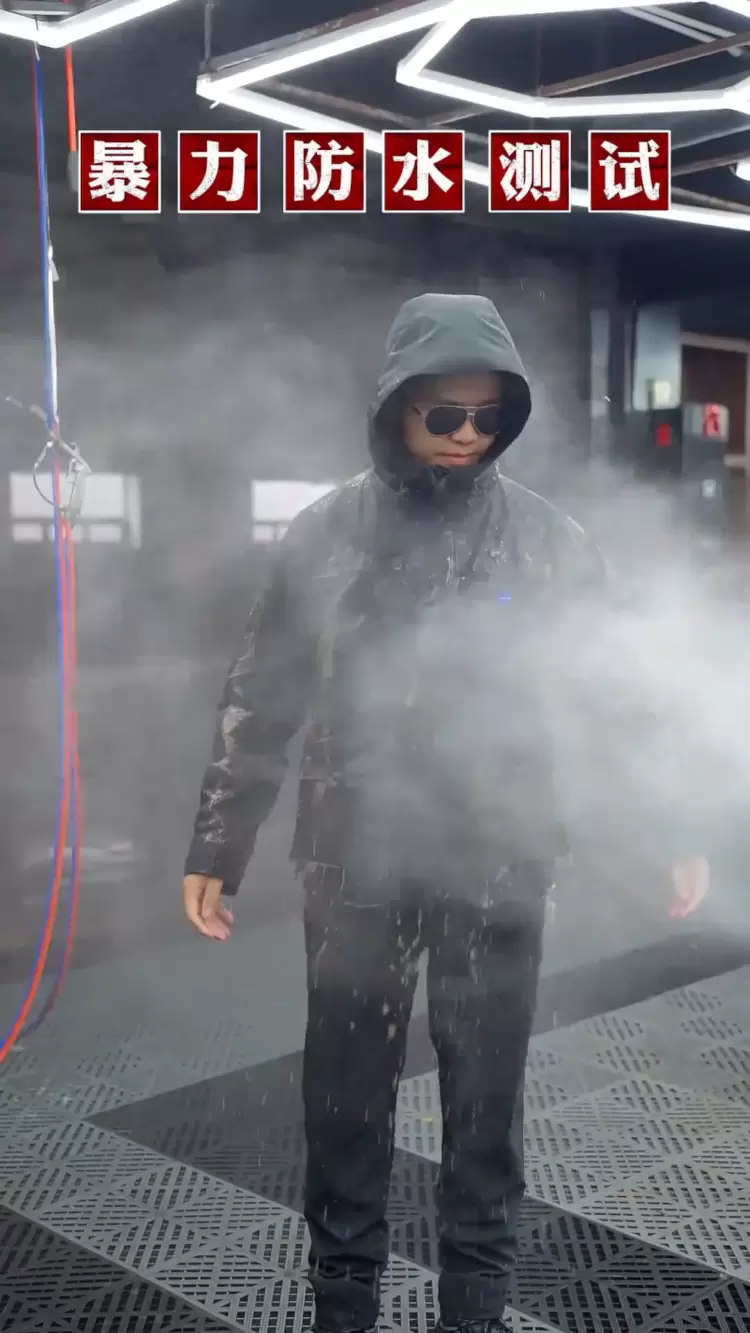 在模拟暴雨测试中,使用高压水枪对衣物进行持续喷射20分钟后,衣物内部(含前身、袖口、接缝处)均无任何渗水现象,衣物里层始终保持干。值得一提的是,面料采用Teflon纳米级抗污整理技术,测试后衣物表面的水渍、泥点只需轻轻擦拭即可清除,无需费力清洗,提升了户外使用的便利性。