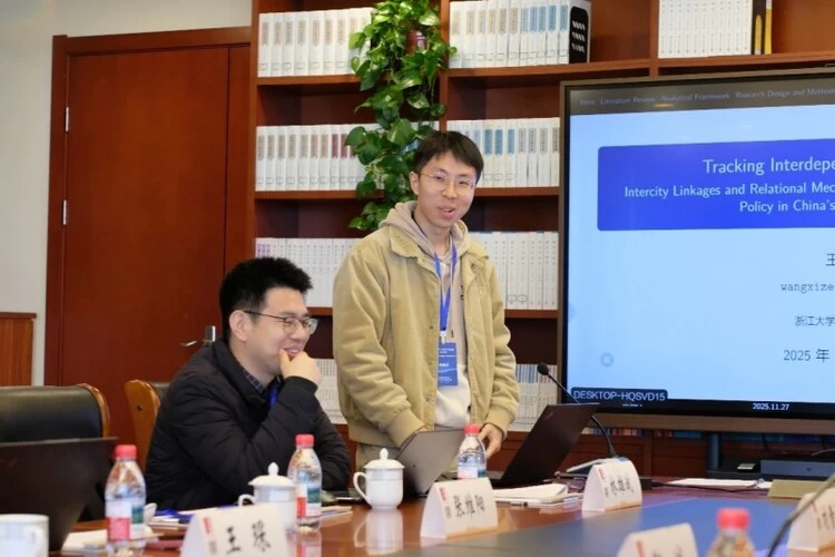 王羲泽(浙江大学)以英文汇报“Tracking Interdependent Policymaking: Intercity Linkages and Relational Mechanisms of Housing Purchase Restriction Policy in China's Three Megaregions”,选取三大城市群为样本,挖掘住房限购政策在城市间的互动传导机制,为理解区域政策协同的内在逻辑提供了新视角。