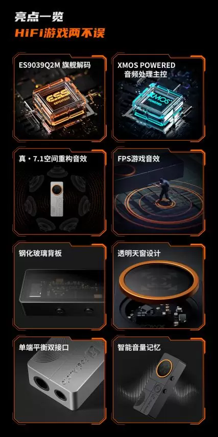 1.硬核配置加持:搭载XMOS Powered功能生态集16核架构(双核 1.6GHz),搭配ES9039Q2M旗舰解码芯片,信噪比≥122dB,失真率<0.0003%,实现极致纯净的音频输出;