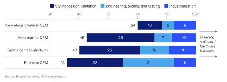 电动化、智能化产业背景下,汽车“大脑”也遵循摩尔定律演进,让汽车从“固定机械产品”转向“可进化电子-机械综合体”。车企为抢占市场不得不高频推出新车型,车型短周期研发进入常态化模式。同时电动化让动力系统、底盘系统简化,车身特别是外覆盖件成为传达车企品牌理念与产品差异化定位的核心载体,车身以及工装模具成为整车短周期开发的“瓶颈”环节。