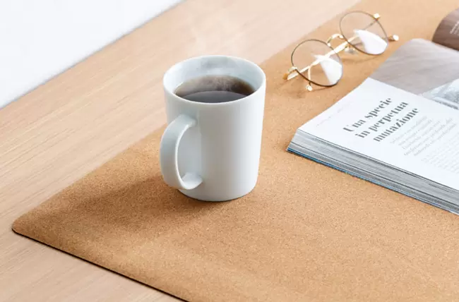 翻转过来,SANWA双面桌垫的软木面则是另一种惊喜。采用葡萄牙橡木制成的软木,不仅有着独特的自然纹理和温和色调,更能防潮、耐磨、隔热,鼠标移动精准顺滑,办公游戏都会爱上这种操控感。你可以安心放置一杯热饮,桌面不易留痕,哪怕打翻也能一擦即净。