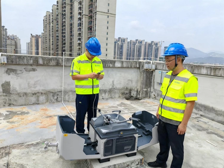 中国移动广西公司工作人员检测5G网联无人机设备运行、网络连接情况
