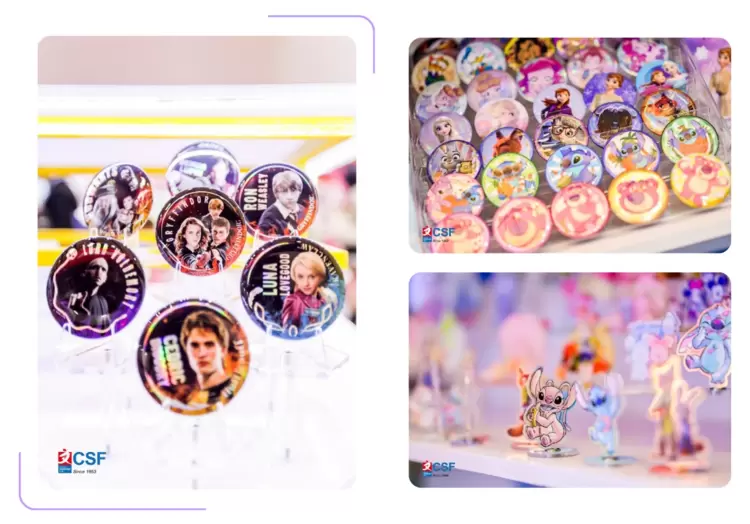 要说文创和潮玩的灵魂,那必须是IP!文创是把老祖宗的宝贝变可爱——博物馆镇馆之宝成书签,古画纹样印在笔记本上,让传统文化钻进日常;潮玩则是把喜欢的IP捏成真——泡泡玛特、迪士尼、漫威、国风动漫,一个手办就是一句“我懂你”,不用多说话,同好秒懂。现在文创和潮玩的圈子越来越融,跨界联名玩得飞起,而CSF文化会这个展区,就是把这些宝藏玩法全打包的快乐星球!