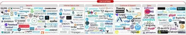其中,B2B创企的主要包括企业安全、数据、IT发展、客户支持、零售、HR六大方向,企业安全占据了绝对主导。