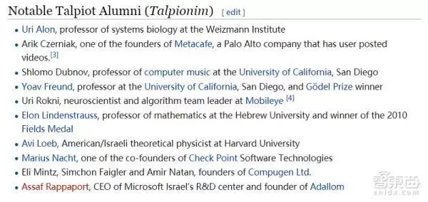 ▲维基百科统计的“Talpiot计划”培养出的高级人才