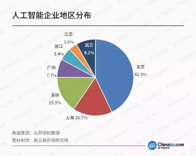 从地区分布来看,根据2017年的统计数据,北京以其出色的人才、技术、产业、资本等环境,吸引了近半数的人工智能创业公司。