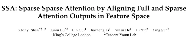 论文标题:SSA: Sparse Sparse Attention by Aligning Full and Sparse Attention Outputs in Feature Space