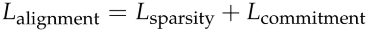 对齐目标由两个互补的组件组成。第一个是稀疏性损失,它旨在促进全注意力输出模仿稀疏注意力输出,从而促进形成更稀疏和更具选择性的注意力分布: