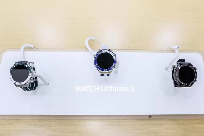 穿戴产品专桌与智慧办公专桌则聚焦于个人健康与移动生产力。HUAWEI WATCH Ultimate 2不仅融合了专业运动监测与高端材质工艺,更是一款支持20 ATM防水等级(最大潜水深度150米)与双向北斗卫星消息的专业设备。其搭载的纳米微晶陶瓷材质与多种专业传感器,能为用户提供从日常健康管理到户外探险的全场景守护,成为腕上可靠的健康管家与安全伙伴;HUAWEI MateBook Fold 非凡大师则以其独特的折叠形态与澎湃性能,重新定义了高端商务笔记本的形态,与手机、平板共同构成了无缝协同的移动办公生态。此外,HUAWEI FreeClip 2等音频产品,凭借开放式设计与智能音频切换技术,为用户带来了全天候舒适佩戴与全场景声效随行的听觉体验。