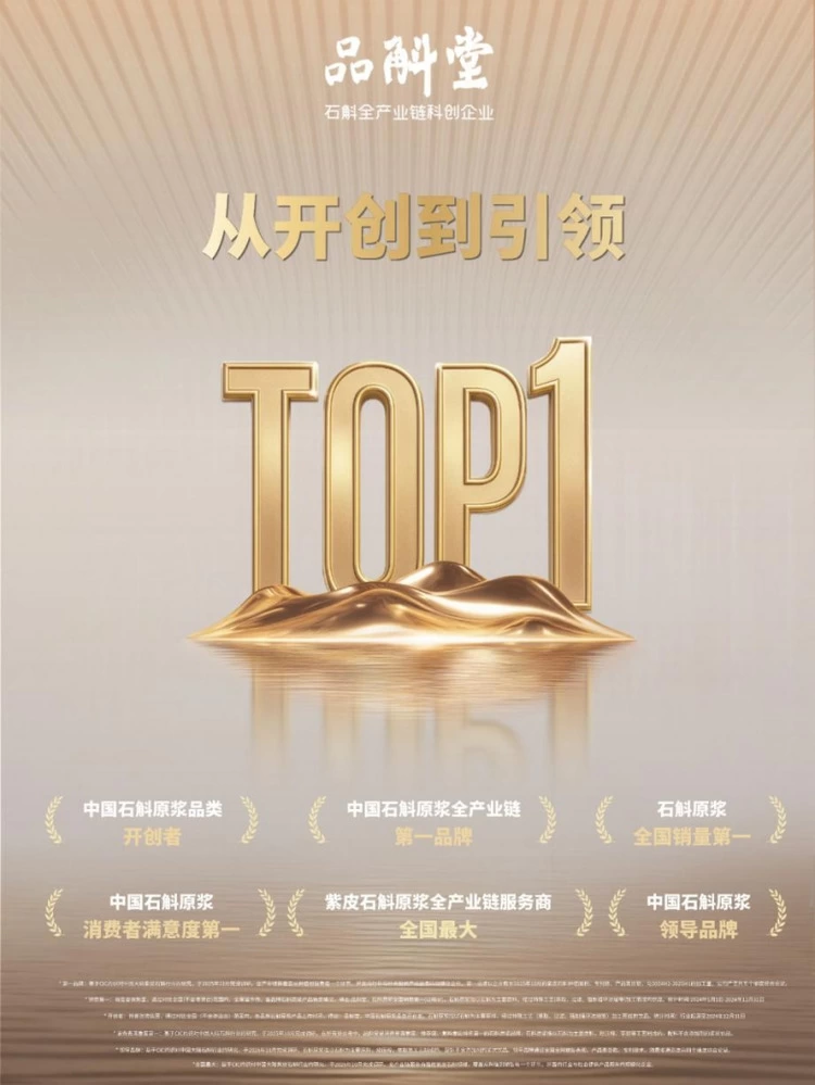 在石斛健康品领域,品斛堂作为中国石斛原浆品类开创者,凭借全链把控能力确保产品品质与规模,最终实现石斛原浆全国销量第一,完成了从品类定义者到市场领导者的跨越。