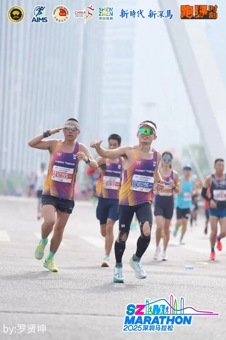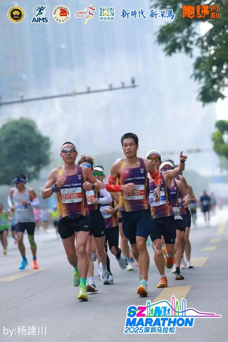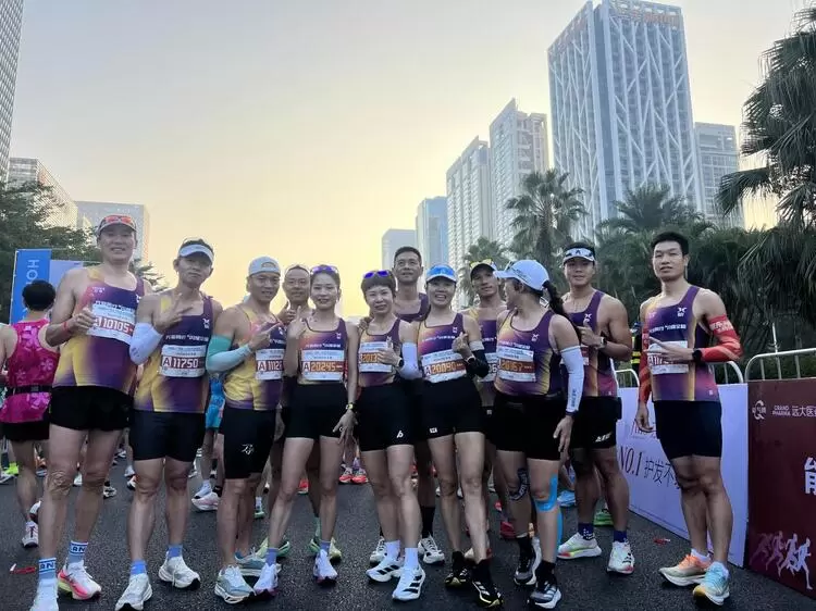 一路上,队员们相互鼓劲、用默契与坚持诠释着 “闪电队” 的速度与激情。42.195公里的征途,不仅是体力的较量,更是心态的博弈。当官方氛围组从福田的热情磅礴演绎到南山的国风雅韵,再到前海的国际化声浪,充客闪电队始终保持着高昂的斗志,频频向沿途热情的观众挥手致意。