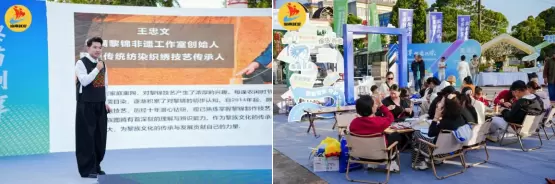 创业路演环节,三位创业者带来了各具特色的项目。海南飞瀑山食品有限公司代表分享了特色食品创业故事,琼中华裕绿橙产销专业合作社通过标准化种植与品牌化包装,让琼中绿橙直达市场、带动农户增收,琼中帕满黎锦非遗工作室则以创新设计让黎锦老手艺焕发时尚活力,带动非遗传承与就业增收双赢。此外,活动现场设置了30余个创业项目展区,覆盖电商、非遗、农产品等多个领域,同步推出趣味游戏打卡区,让来宾沉浸式感受琼中就业创业的多元活力。