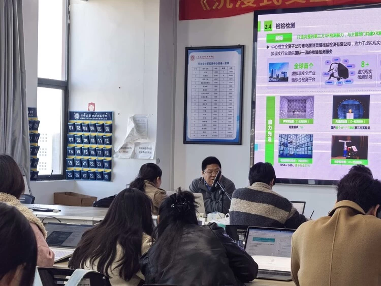 国家虚拟现实创新中心(青岛)副主任 李晓波分享产学研合作经验。其所在中心由歌尔等18家企业共建,拥有首个全自主研发的虚拟现实中试平台。现场演示的VR网球游戏,借助毫米级定位与力反馈技术,真实还原了运动场景,为学员的交互设计提供了鲜活借鉴。