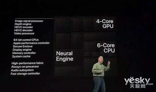 几天后,苹果A12仿生芯片终于在9月13日的秋季发布会上亮相。据苹果官方介绍,A12仿生芯片是“智能手机中最智能、功能最强大的芯片”,它一共包含了六核CPU(由两个“性能”核心和四个“效率”核心组成),一个四核GPU(比A11快50%),以及神经引擎的更新版本,这是芯片的一个特殊部分,用于处理AI任务。苹果A11搭载双核神经引擎,但A12仿生神经引擎多达八个核心。虽然旧的A11神经引擎每秒可以处理6000亿次操作,但新版本每秒可以处理5万亿次操作。