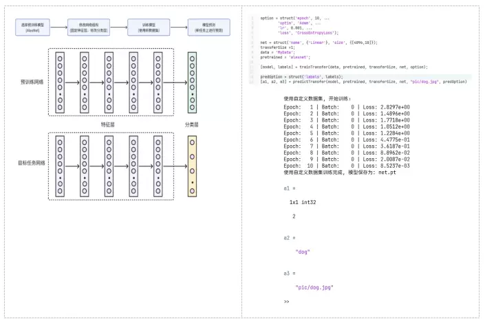 深度学习工具箱:新增迁移学习功能,在网络搭建、模型训练至结果预测的全流程支持基础上,实现对预训练模型的高效复用,大幅缩短模型开发周期,加速深度学习技术在实际场景中的落地应用。