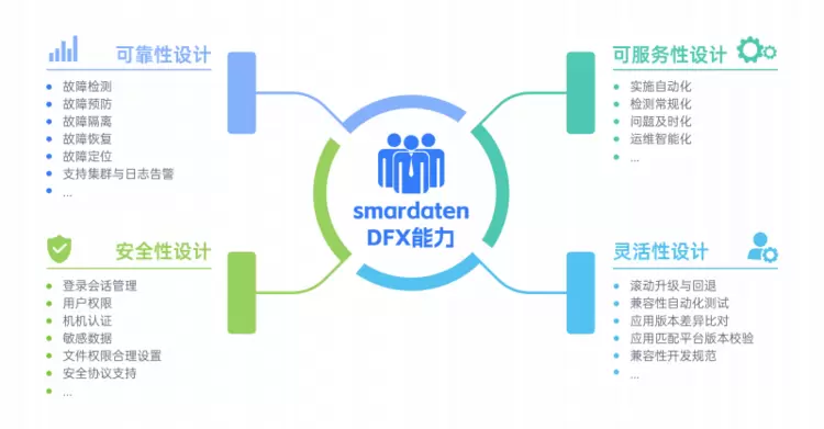 smardaten底层工程体系已完成了DFx相关工作,包含了高可用设计模式(如冗余、负载均衡)、内置的安全最佳实践(如数据加密、SQL注入防护)、以及性能优化技巧(如缓存策略、数据库索引)。