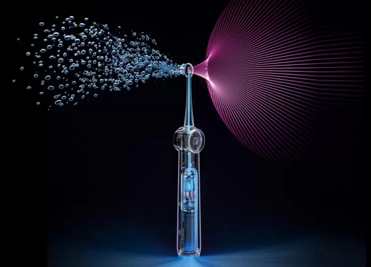锐舞在产品设计中体现了科技创新与人文关怀的深度融合。刷头设计运用康达效应,让高速气流紧贴特殊设计的喷口,把水和气泡精准地“推”进牙缝深处。