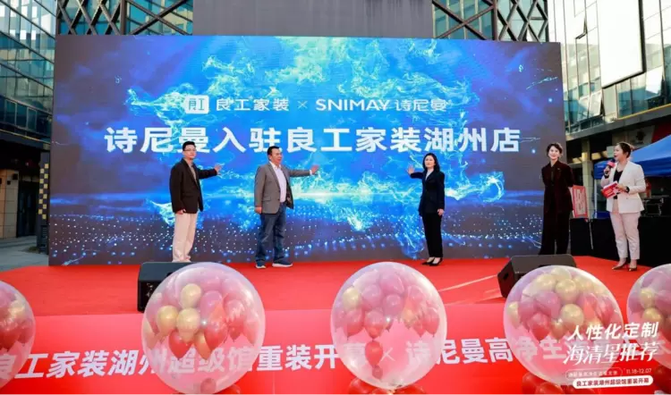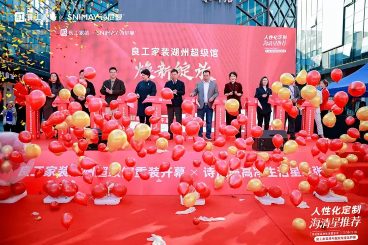 2025年12月7日,良工家装湖州超级馆在万众期待中迎来焕新启幕。浙江省建筑装饰行业协会会长贾华琴、良工家装创始人宣红卫、诗尼曼家居董事长辛福民、诗尼曼品牌代言人/著名演员海清等嘉宾共同出席,见证这一重要时刻。