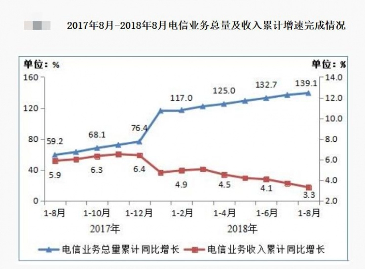 今年1-8月,三家基础电信企业完成移动数据及移动互联网业务收入4106亿元,同比增长11.5%,收入增速较1-7月回落0.8个百分点;移动数据及移动互联网业务收入占电信业务收入的46.2%,占比较去年同期提高3.3个百分点。一方面是移动电话用户总数的持续快速暴增,另一方面是用户DOU的快速增长,但是这些本该对收入带来正向拉动的增强却并非有带来相应的营业收入增长。而且从增量收入绝对值看,月度还出现了环比下降。用户和业务增量与收入增长并不匹配,或许真实反映了持续提速降费后,特别受限制于流量资费单价再降30%的监管政策和流量漫游费政策红利的取消,再通过大面积深度推广不限量套餐,运营商开始自我革命的残酷程度。