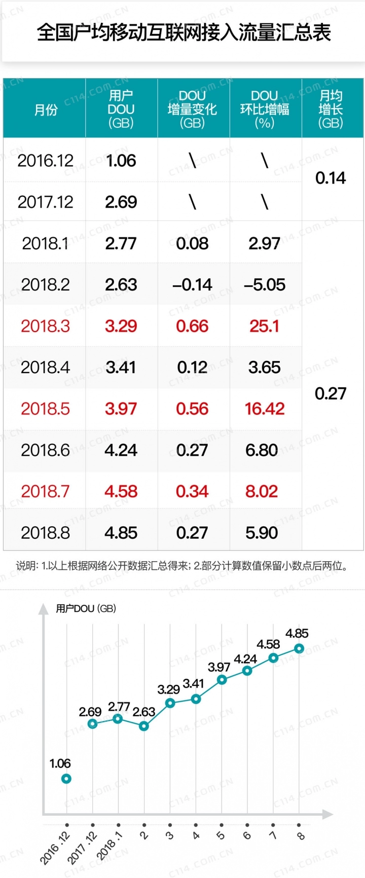 二、移动宽带用户虽增长,用户DOU单月却环比增幅放缓
