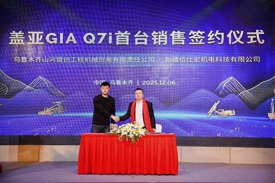 新疆矿产资源丰富,新疆盟创作为扎根新疆二十余年的本地企业,拥有完善的销售和服务团队,累计服务客户超过200家。发布会现场,盖亚(南京)矿山设备有限公司总经理谷晓坤将盖亚Q7i全国独家总代理授予新疆拓岩盟创,并举行服务认证授权仪式,标志着双方战略合作全面升级。现场还举行了盖亚GIA Q7i首台销售签约仪式。