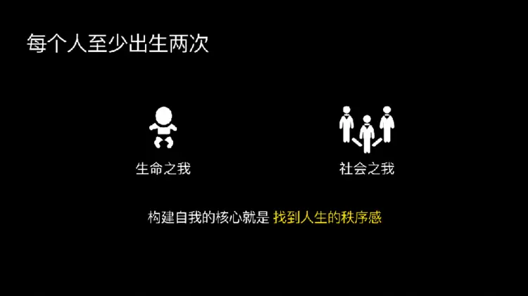 任永亮在演讲中,援引心理学家艾里克森“人会经历两次诞生”的理论。他指出,人的第一次出生是生命体的诞生,从母体出来面对世界;第二次出生是进入到社会之中的,对社会自我的建立,这也是人与其他动物最大的不同。比如一匹小马,它生下来就会站立、会奔跑,但是人从生下来到真正的成熟,需要一个长期的、建立社会化自我的过程,这个过程如同进入旷野,需要在旷野中不断地去寻找自己的方向。