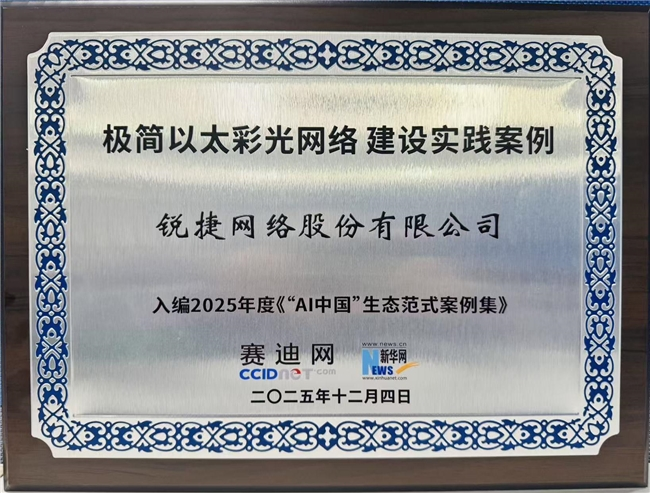 锐捷极简以太彩光网络解决方案入选《“AI中国”生态范式案例集(2025)》