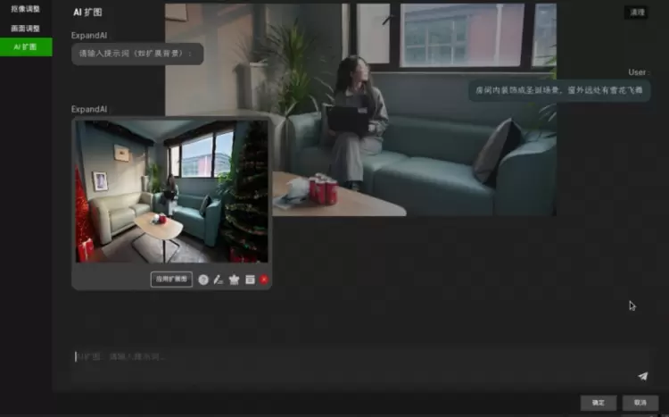 随幻科技MPRO智能演播室系统中的AI助手,让虚拟制作与实景演播之间的断层彻底弥合。AI扩图技术通过深度学习算法,可将单张静态图片智能解析为可自由调整的全景场景。无论是风光背景的延伸,还是建筑空间的扩展, AI都能根据画面语义自动生成符合透视与光影逻辑的扩展内容。