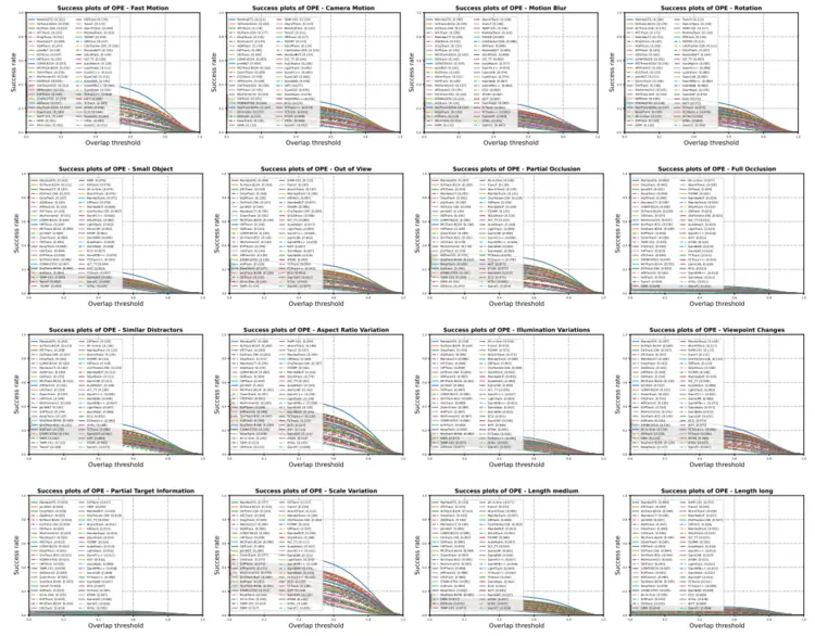04实验:50个追踪器大乱斗,谁是王者?作者对50个现代深度追踪算法进行了全面评测,涵盖了CNN、Transformer、Mamba以及多模态算法(如OSTrack,MixFormer,MambaTrack,CiteTracker等)。