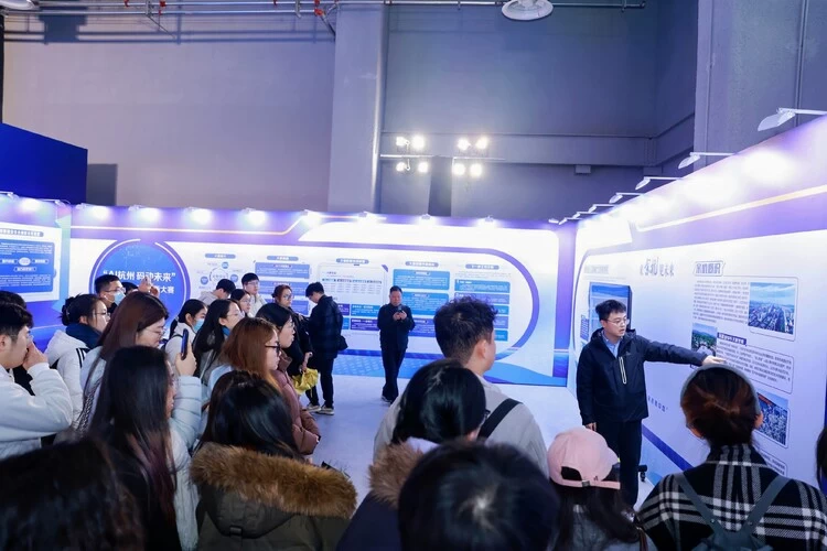 为了让青年人才从“听说余杭”深度升级为“感知余杭、认可余杭”,现场还正式启动了“青年人才探索日”活动,当天下午近50名青年人才深入杭州未来科技城城市展馆、钉钉、智澄AI等区内标志性企业与平台,开展“余杭区AI主题路线参观调研”,直观感受余杭科研资源、产业生态与城市配套,推动青年人才从“走走看看”向“扎根留下来”转变。
